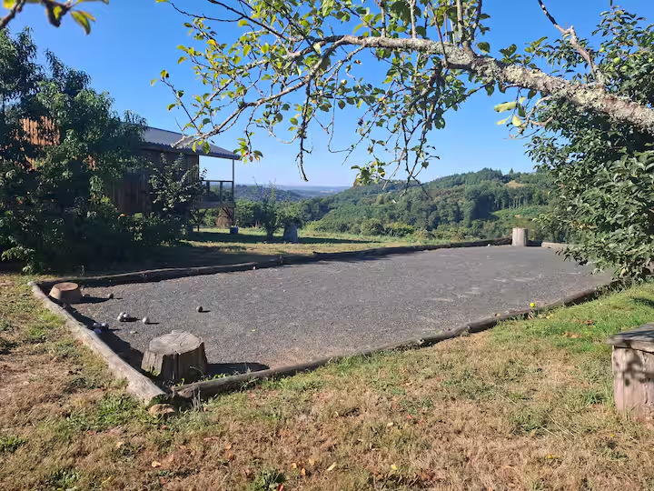 Un espace convivial pour des parties endiablées au coucher du soleil. Entre amis ou en famille, c’est le lieu parfait pour partager un moment simple et chaleureux, un verre à la main, au cœur de la nature corrézienne.